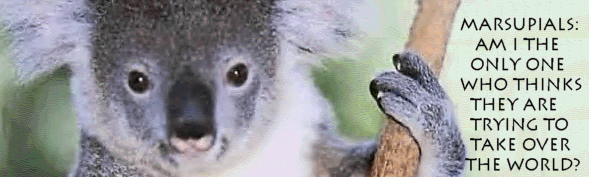 Over the coming few weeks you will see, laid out before you, a diabolical plan of world domination created by the worlds most jealous creatures. What creatures you ask? Whats the matter can't you read? Its the marsupials you fucking moron. But why are they jealous you ask? Its simple really. Millions of years ago, pretty much all of the mammals were marsupials and so they basically dominated the Earth. But since then there has been a notable decline in Marsupial mammals. Why? The Marsupials themselves blame us, the Placentals (No pouches) for their decline preffering not to mention their poor adaptability skills. So how exactly are these marsupials contributing to the world domination? Find out as I examine every Marsupial species in detail and discover exactly what they are adding to the New Marsupial Regime or Mazis.